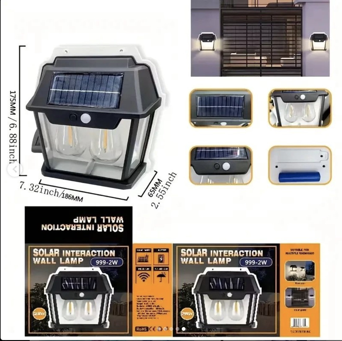 СОЛОЧНА СВІТОДИОДНА ЛАМПА 12 Вт Настінний світильник на сонячній батареї декоративний вуличний HW999-2W Лучшая цена
